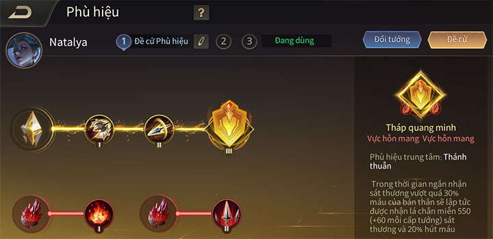- Chiêu 3 – Tia sáng tử vong: Natalya phóng ra một luồng năng lượng chết chóc gây sát thương phép ở mỗi 0.25 giây, đồng thời cũng nhận được một lớp lá chắn giúp miễn khống chế và chặn 850(+100% công phép) sát thương. Chiêu này kéo dài tối đa 3.5 giây, nhấn lần nữa sau khi tung chiêu để hủy, dùng phím di chuyển để điều hướng di chuyển của tia sáng.